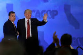 Trump takes off gloves in aggressive state GOP convention speech Republican presidential candidate Donald Trump waves as he is introduced by State Sen. Joel Anderson before speaking at the California ...