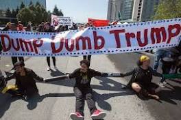 Why Are People Protesting Donald Trump In California? The Candidate Doesn't Seem Welcome In ... Prior to the California Republican Convention in Burlingame Friday, protesters ... Back window has been smashed out of a Costa Mesa police cruiser.