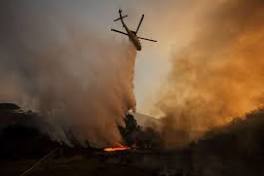 The Latest: Emergency declared on 2 California wildfires FILE- In this Sunday, July 24, 2016 file photo, a helicopter makes a drop on a wildfire near Placerita Canyon Road in Santa Clarita, Calif. The smoky ...