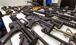 California's tough gun laws are getting stricter (AP Photo/Damian Dovarganes, File). FILE - In this Dec. 27, 2012, file photo, a variety of military-style semi-automatic rifles obtained during a buy back ...