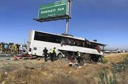 Highway pole rips through bus in California crash, killing 5 Highway pole rips through bus in California crash, killing 5 ... A charter bus veered off a central California freeway before dawn Tuesday and ... of the crash on State Route 99, where the speeding bus carrying about 30 people hit the ...