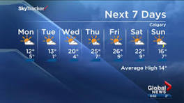 Calgary weather: highs in mid-20s expected by Thursday It seems Calgary will finally be seeing some hot weather this week with the temperature set to hit 20 C by Wednesday and then climb even higher ...